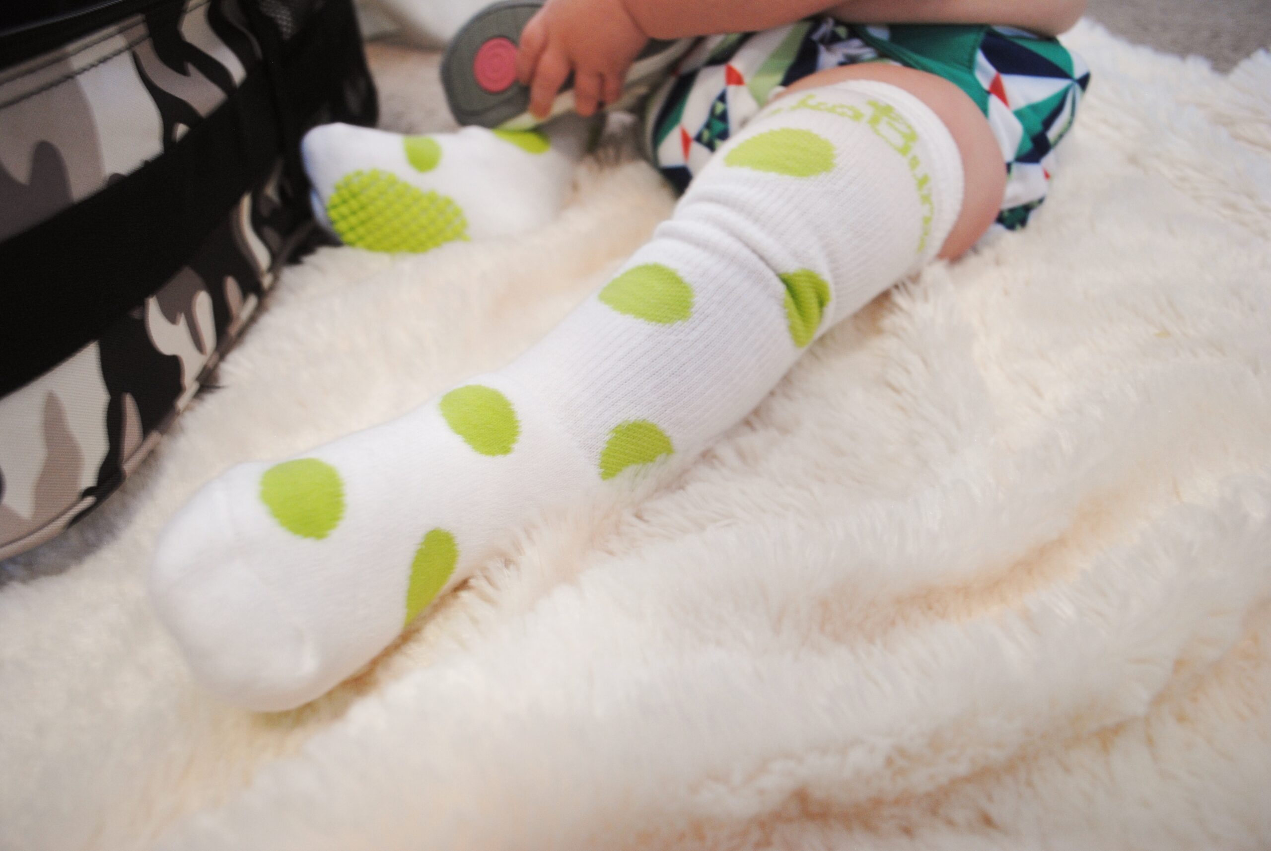 These ChunkaSox are thigh-high (yeah, adorable, I know) and super amazing. My daughter is like a pro when it comes to taking off socks and shoes. Like, it’s her game. She just loves it. But not anymore! Not with these socks!