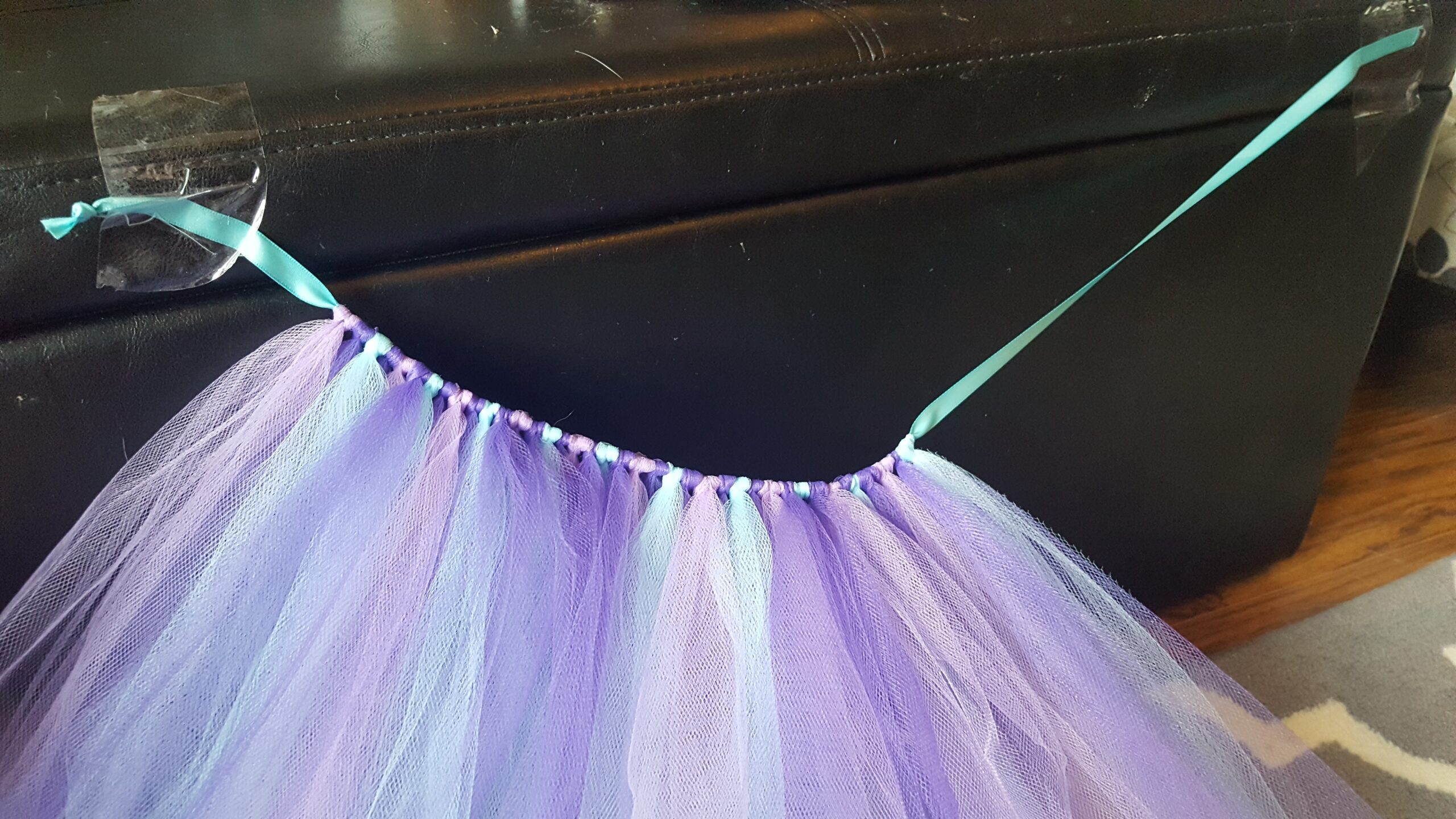 - Decide how long you want your tulle to fall. I have seen some tutus that touch the floor. That’s up to you! Measure all of your tulle and get to cutting. I like to have them all cut out ahead of time and work all the way through. For my length, I cut each piece at 24 inches because they will be folded over in half so they will be 12 inches long when I’m done and it’s set up.