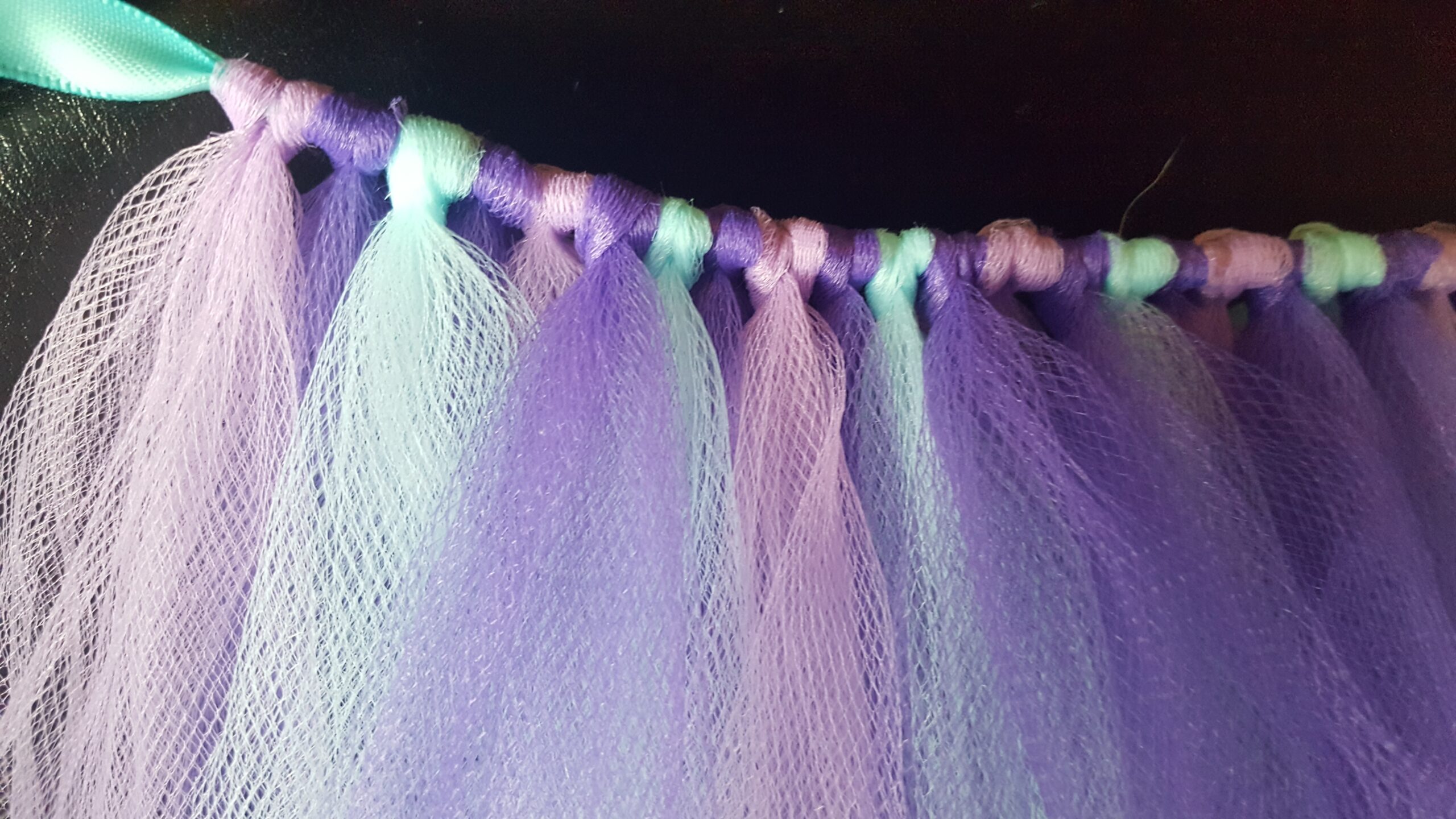 **6 in rolls of tulle (choose your choice of colors but you will need about 60 yards total. I chose 3 colors but you certainly can do more or less) Walmart has a good selection of tulle for $1.79 but Michaels will have more of a variety of tulle for $2.99