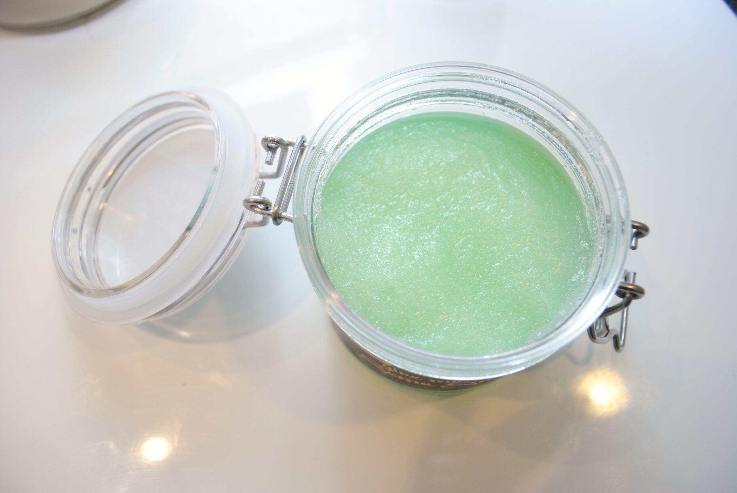 This is a sugar scrub so it is perfect for exfoliating dry skin. I never really had much dry skin until after pregnancy. Weird, right? I used this on my legs and arms and it feels amazing soft! Think pedicure at the salon and how your skin feels after they have massaged your feet and legs. That smooth.