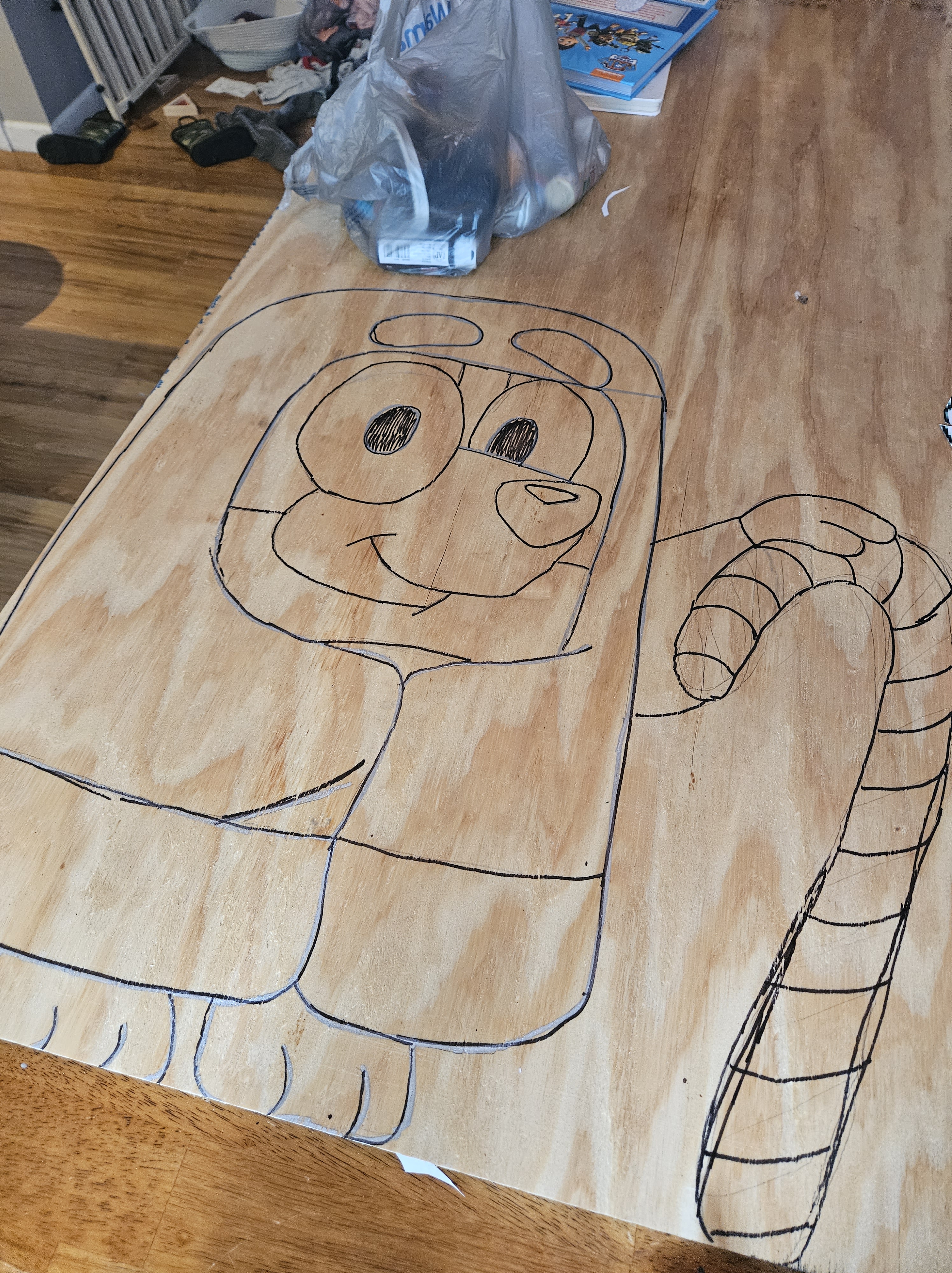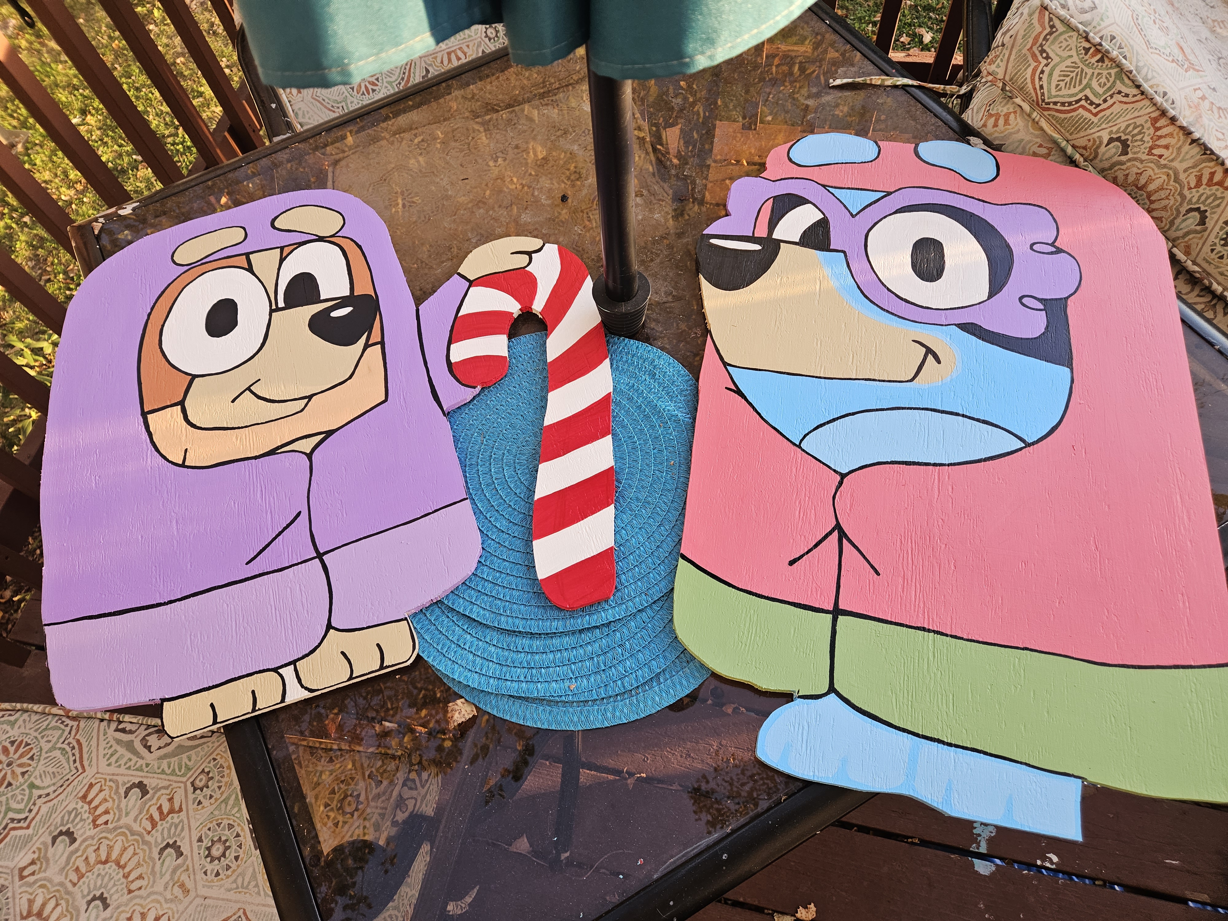 1. I found clipart of the Bluey & Bingo Grannies clipart and printed in poster size by saving as a PDF so they each measure at 3.5 ft tall and will fit side by side on a sheet of plywood!