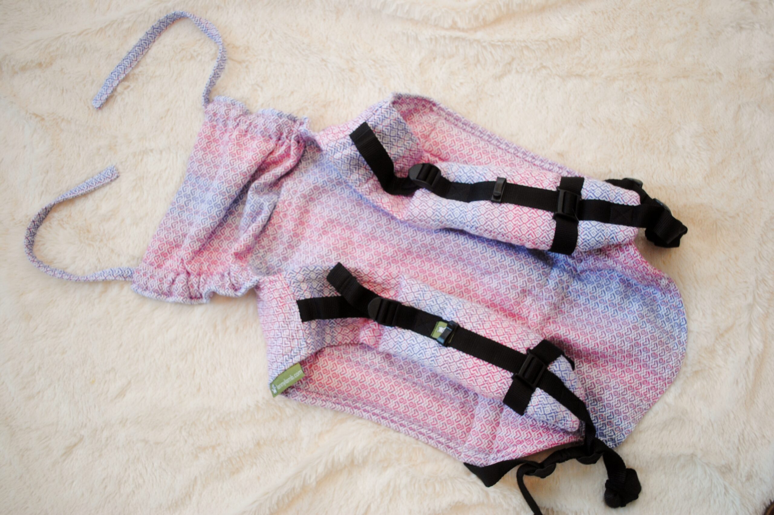Anywho…I wanted to show you this GORGEOUS carrier from Lenny Lamb. Isn’t it absolutely breath taking? It is a standard size onbuhimo in the print Love Haze. I love the intricate details on this carrier! The heart pattern mixed with the ombre colors is absolute LOVE. I mean, I really couldn’t stare at it enough. I don’t think I have seen a carrier as pretty as this one before.