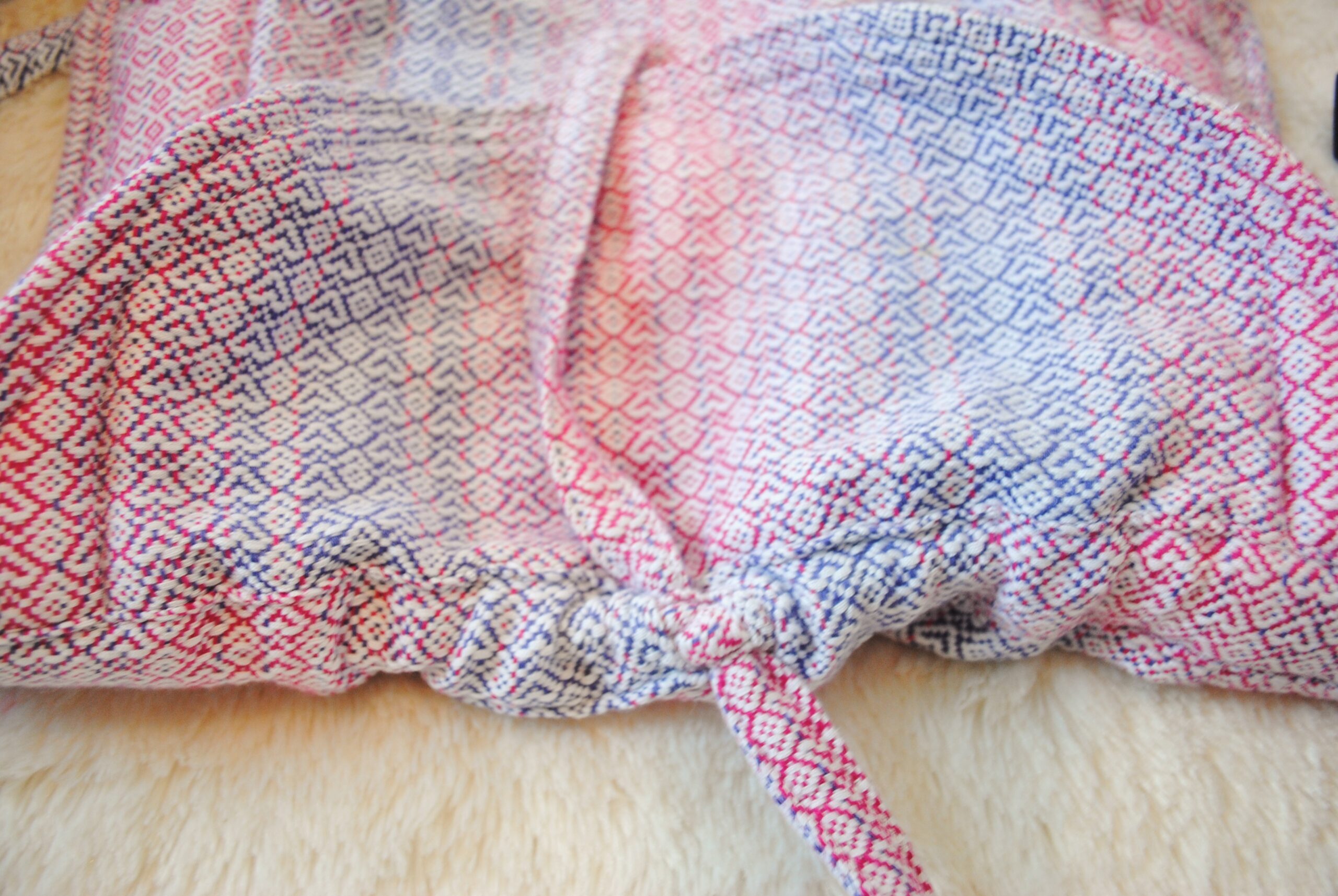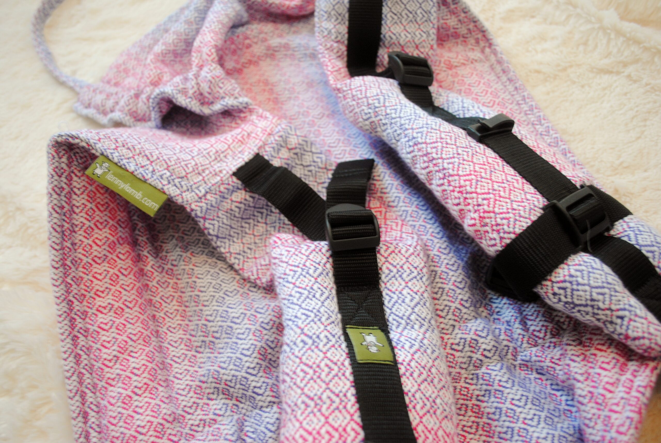 The design, called LittleLove, is jacquard weave and 100% cotton. This type of weave makes for an incredibly soft and floppy carrier. No need to break this carrier in! It’s amazingly soft. The only con to this fabric is that it is more prone to snags and pulls.
