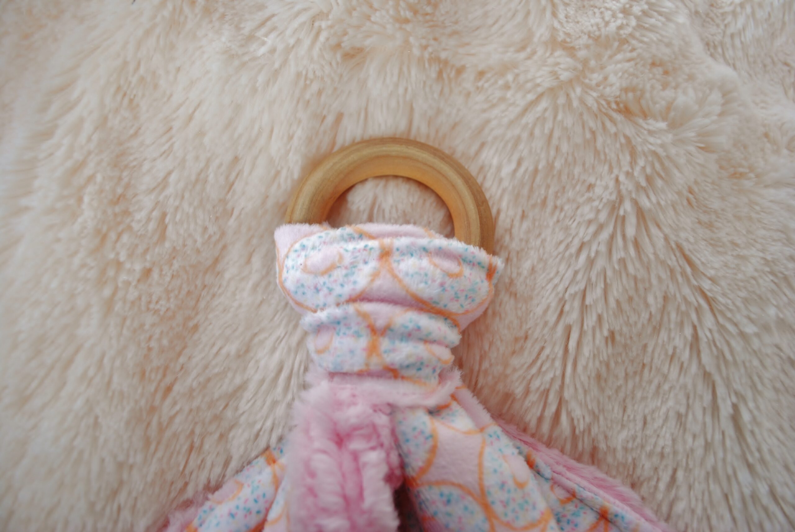 But going on to the product….I love our Pink Donut Teether. I love wooden teethers in general. A cool thing about wood is that you likely don’t have to deal with toxins. It’s a natural resource and it does feel soothing to their gums. I also think wood just looks more modern and is definitely trendy!