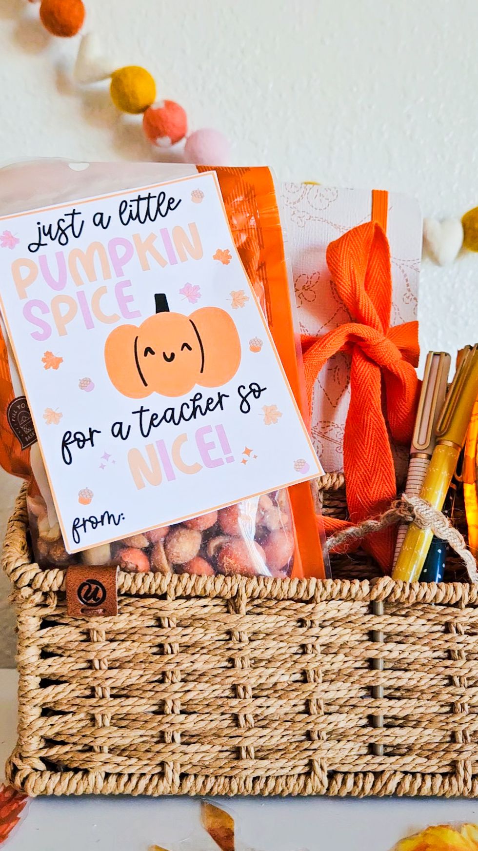I am loving this U Brands Woven desktop organizer and filled it with the best pumpkin spice goodies! I filled mine with the U Brands Fresh Foliage Journals, U Brands pens , Snickers pumpkins, pumpkin trail mix, and pumpkin soap.