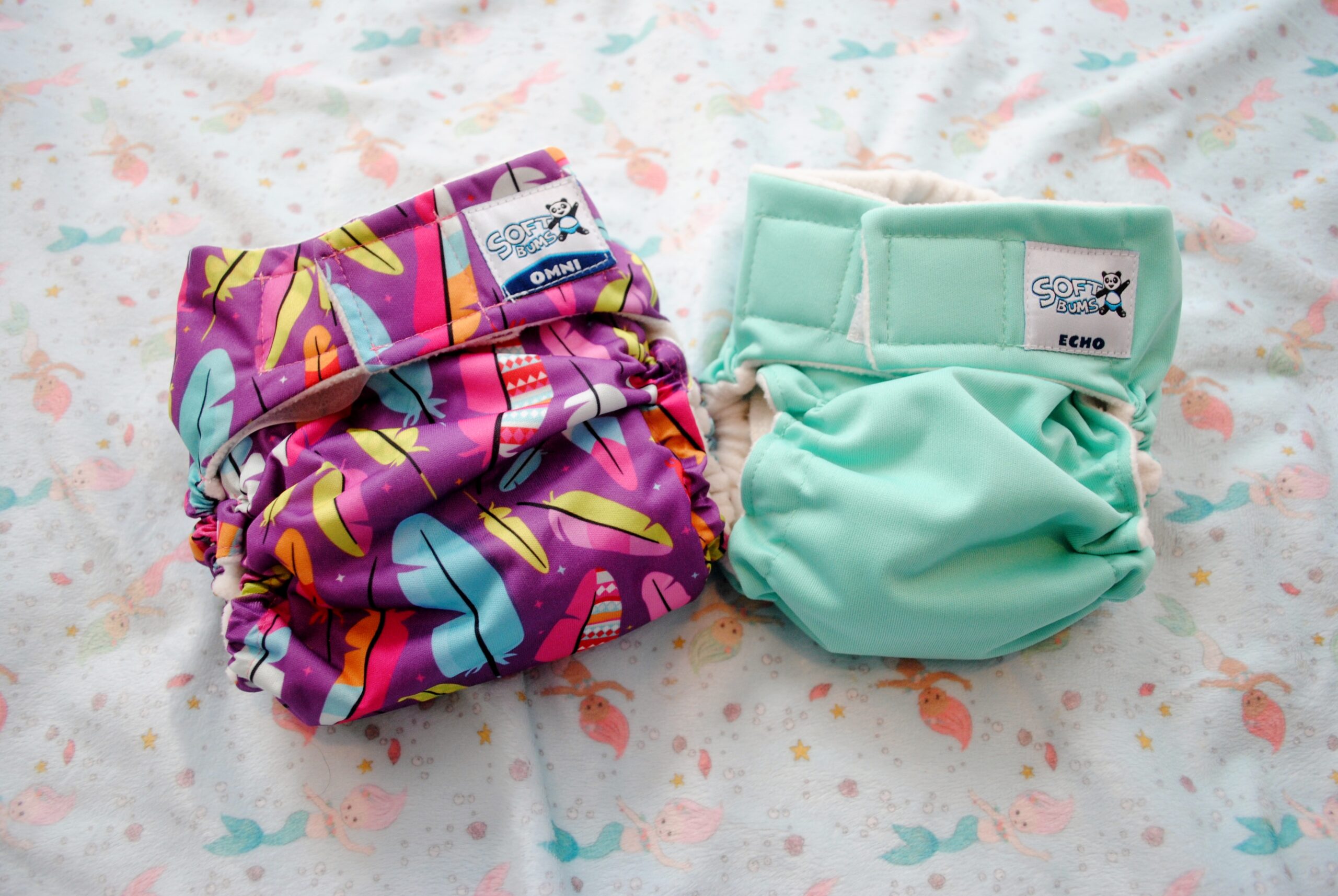 Just like the Omni, the Echo are made in the U.S.A. This cloth diaper is also super super soft and really absorbant. The fit is perfect and it’s not crazy bulky. This diaper is actually a little trimmer than the Omni diaper. I love the choices of prints! There are a variety of solids OR prints that are super fun to choose from in either Omni or Echo.