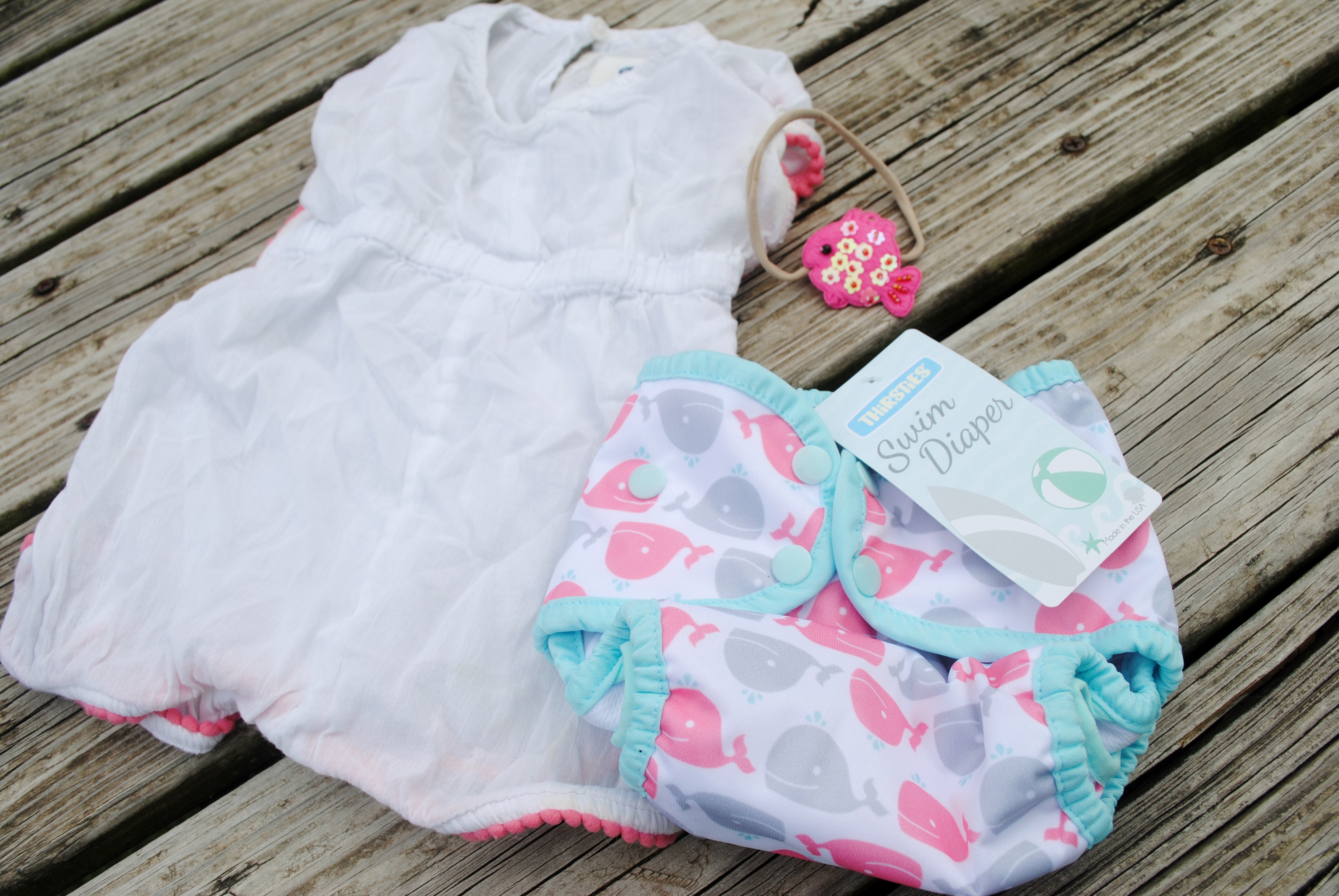 You may be instantly thinking “oh, cloth diapers. They will be soo bulky.” This is a super trim little diaper. If you cloth diaper on a regular basis, think diaper cover. I can easily fit her swim bottoms on over it. Better yet, I sometimes just use the swim diaper as bottoms because the print is so cute!