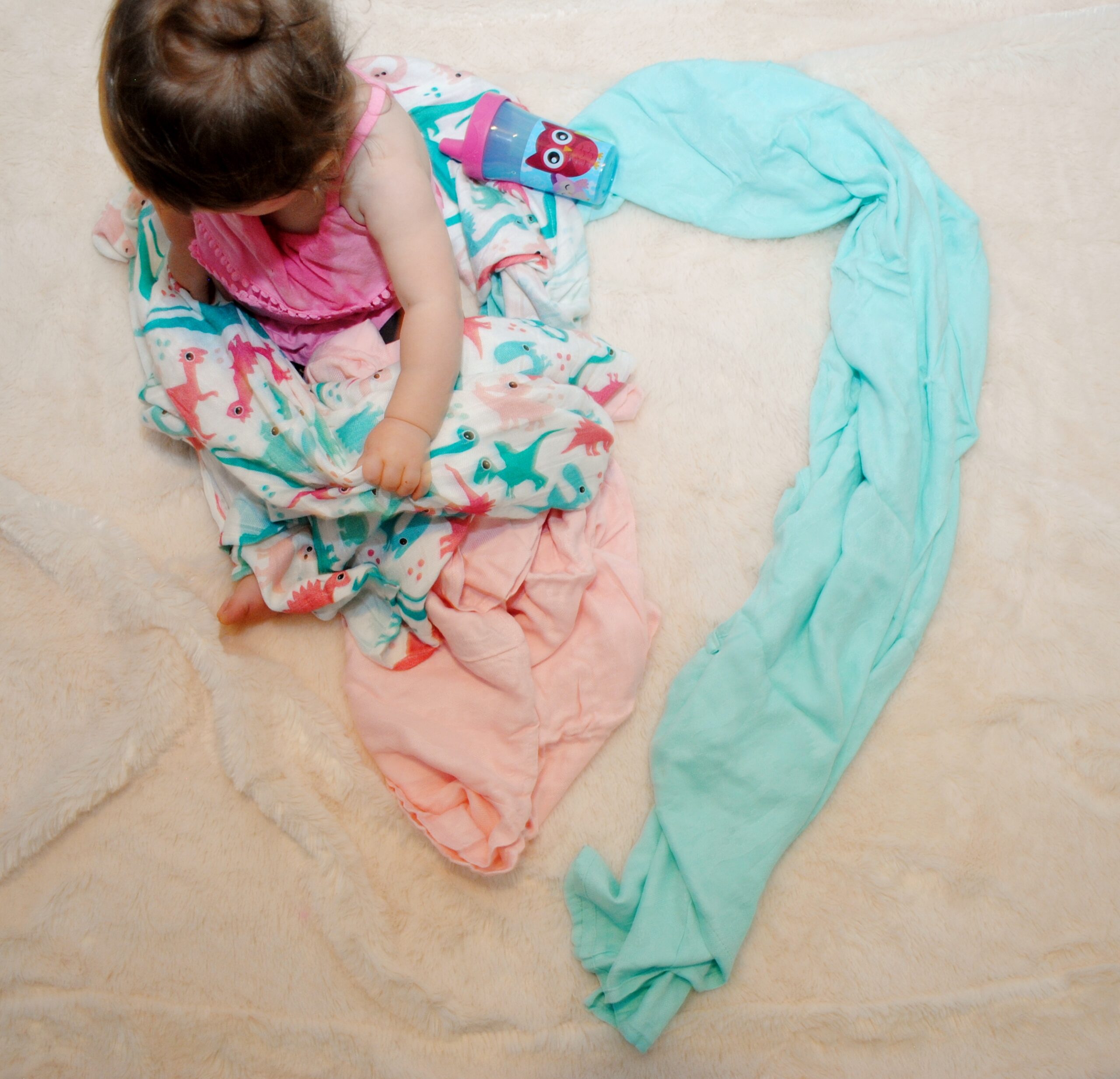 These would be  perfect for swaddling a newborn! One of the things that stunk when swaddling was getting a swaddle that was too small. Ain’t nobody got time for that!!! Tula blankets are 47″ x 47″ so you will have plenty of fabric to successfully swaddle your infant. I will definitely be using these for our next little squish!